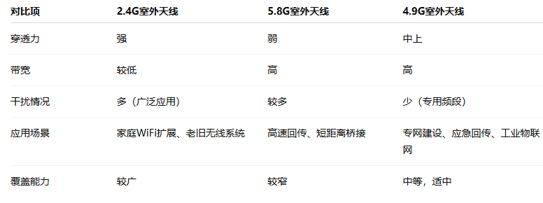 五、与其他频段室外天线的对比